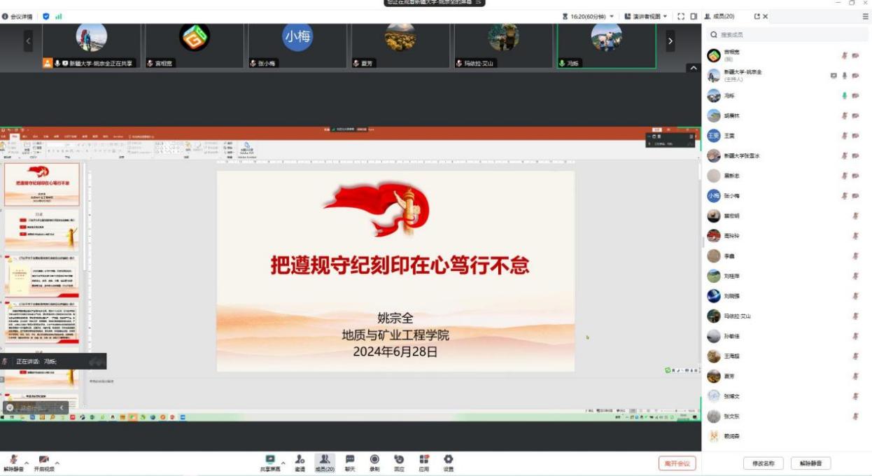 2024年6月28日,资源勘查工程系党支部全体党员教师通过腾讯会议开展“铭初心 强党性 迎七一”主题党日活动,活动由资源勘查工程系党支部书记冯烁主持。